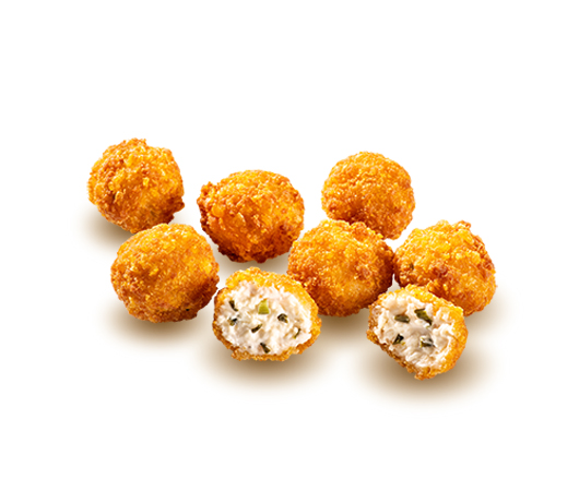 8 Παριναρισμένα μπαστούνια μοτσαρέλας περασμένα στο φούρνο. Συνοδεύεται από BBQ sauce.